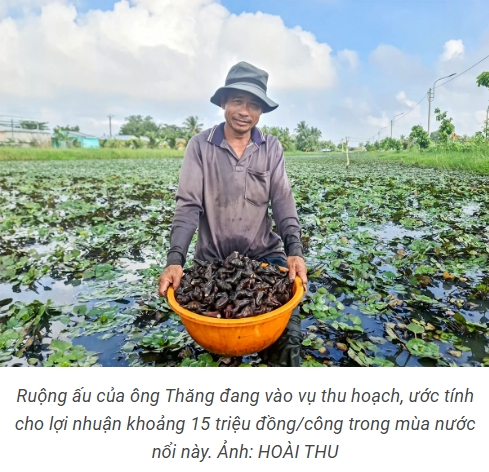 Ông Thăng cho biết: “Trồng ấu không tốn nhiều chi phí nhưng tốn công thu hoạch củ ấu hằng ngày. Đây là loại cây trồng không lo nước ngập như các cây khác, nhưng chỉ lo phần sâu bệnh, ốc ăn cây con. Với hiệu quả mang lại, tới đây gia đình dự tính sẽ mở rộng diện tích và tính tới trồng ấu mùa nghịch, cũng như nhân giống ấu để bán nhằm tăng thêm thu nhập”.
