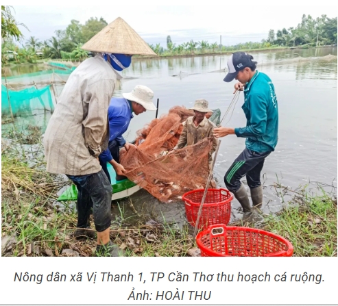 Không chỉ trồng sen, trồng ấu mà nhiều nông hộ tại các xã Phương Bình, Hiệp Hưng, TP Cần Thơ cũng chọn nuôi cá ruộng thay lúa thu đông (lúa vụ 3). Đây là những địa phương có nền đất trũng, thường chịu ngập sớm và rút nước chậm, rất thuận lợi cho việc nuôi thủy sản.