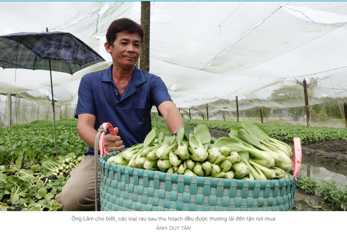 Nhờ áp dụng mô hình nhà lưới và cách trồng cuốn chiếu, ông Lắm có rau để bán quanh năm. Mùa mưa, mỗi tháng ông thu hoạch từ 4 - 5 tấn, mùa nắng năng suất tăng gấp đôi, đạt khoảng 8 tấn. Rau được thương lái đến tận nơi mua với giá 6.000 - 15.000 đồng/kg. Sau khi trừ chi phí, lãi ròng mỗi tháng hơn 20 triệu đồng.