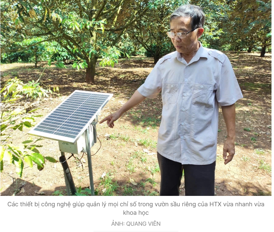Không chỉ thay đổi mô hình trồng sầu riêng, HTX Dịch vụ nông nghiệp sạch Krông Pắc còn mạnh dạn đổi mới tư duy quản lý, chăm sóc sầu riêng bằng cách sử dụng công nghệ cao. Từ thiết bị đo dinh dưỡng đất Enfarm đến hệ thống giải pháp AIGU Smart Farm, mọi chỉ số về đất, nước, thời tiết, sâu bệnh đều được kiểm tra chính xác và tự động. "Trước đây, để biết đất thiếu dinh dưỡng gì, chúng tôi phải mò mẫm. Giờ chỉ cần một thao tác, máy báo kết quả, vừa nhanh vừa khoa học", ông Thọ nói.