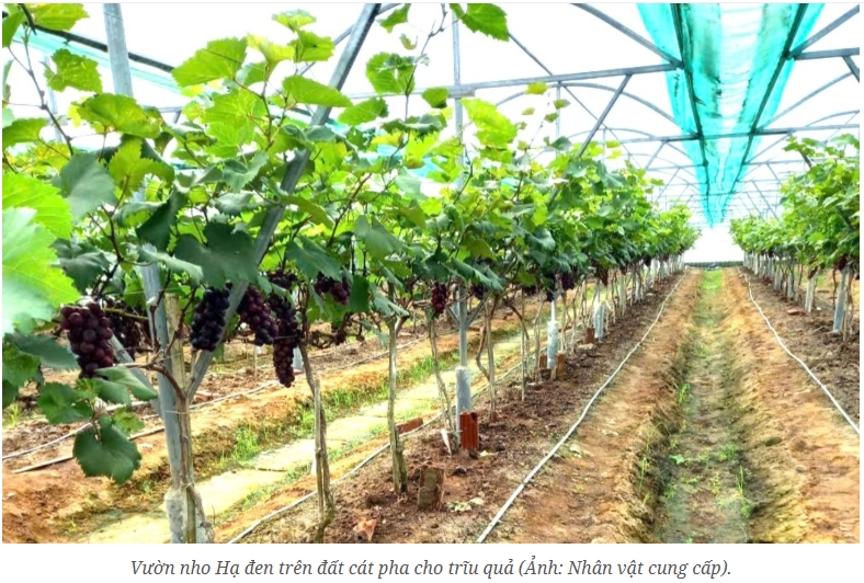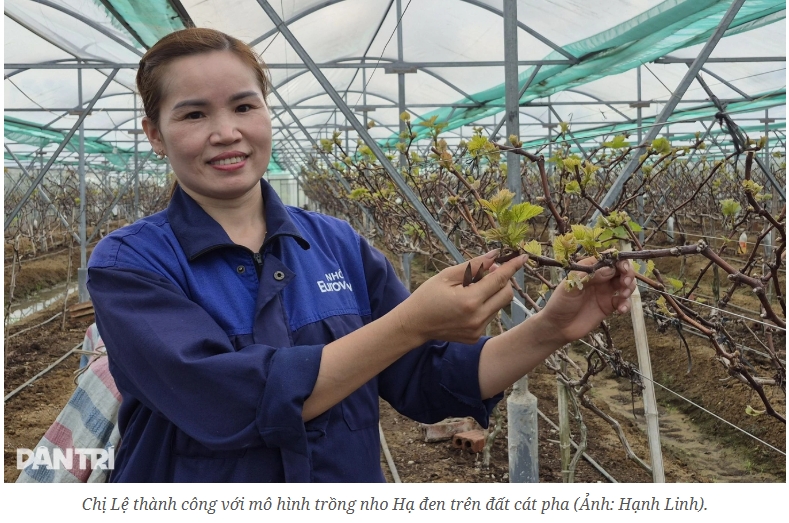 "Những năm qua, nông dân trong xã ồ ạt trồng dưa vàng dẫn đến cung vượt cầu. Mô hình nho Hạ đen của chị Lệ đã mở ra triển vọng phát triển nho trên nền đất cát pha với khí hậu khắc nghiệt của địa phương", bà Hương cho biết.