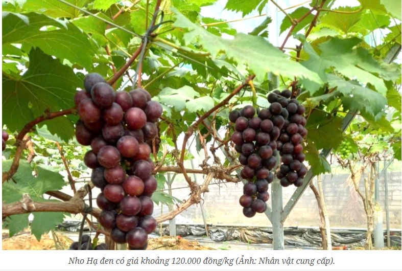 "Với 1.000m2 nho trồng trong nhà màng, mỗi năm tôi thu hoạch hai lứa, sản lượng đạt từ 1,5 đến 1,7 tấn quả. Với giá bán 120.000 đồng/kg, tôi thu về khoảng 200 triệu đồng", chị Lệ tính toán.