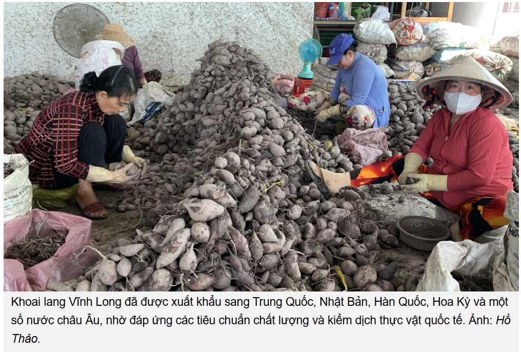 Chất lượng củ ổn định, vị ngon đặc trưng đã giúp khoai lang Vĩnh Long xuất khẩu chính ngạch sang Trung Quốc, Nhật Bản, Hàn Quốc. Một số vùng trồng đã được cấp mã số vùng trồng, mở ra cơ hội khai thác thị trường quốc tế.