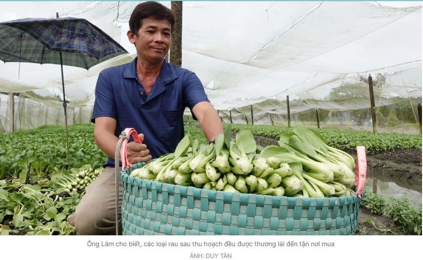 Nhờ áp dụng mô hình nhà lưới và cách trồng cuốn chiếu, ông Lắm có rau để bán quanh năm. Mùa mưa, mỗi tháng ông thu hoạch từ 4 - 5 tấn, mùa nắng năng suất tăng gấp đôi, đạt khoảng 8 tấn. Rau được thương lái đến tận nơi mua với giá 6.000 - 15.000 đồng/kg. Sau khi trừ chi phí, lãi ròng mỗi tháng hơn 20 triệu đồng.