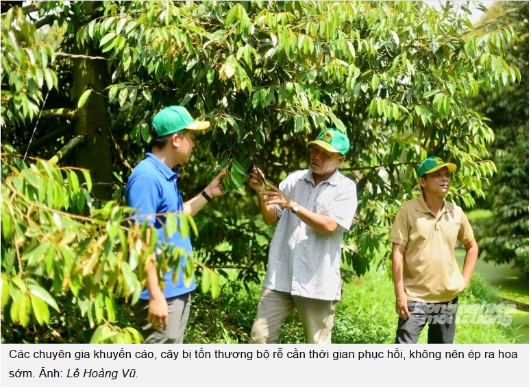 Các chuyên gia khuyến cáo nông dân cần ưu tiên tỉa cành, giảm trái, giảm lượng phân hóa học trong giai đoạn đầu. Cây bị tổn thương bộ rễ cần thời gian phục hồi, không nên ép ra hoa sớm.