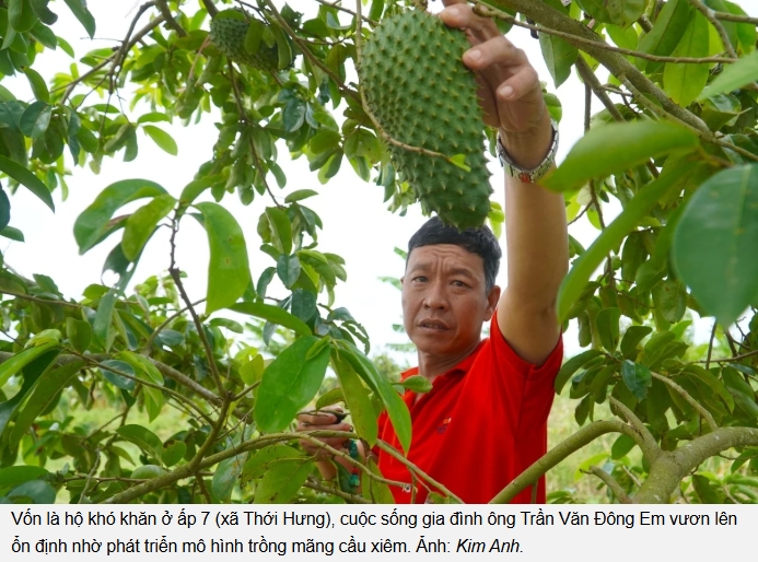 “Mãng cầu giờ là cây trồng đứng đầu ở Thới Hưng, phù hợp để nông dân phát triển lâu dài. Nhờ loại cây này, cuộc sống gia đình tôi thay đổi rõ rệt, thu nhập ổn định hơn rất nhiều. Tôi cũng đang có nhu cầu vay thêm vốn để mở rộng sản xuất, lãi suất ưu đãi giúp tôi yên tâm đầu tư”, ông Đông Em chia sẻ.