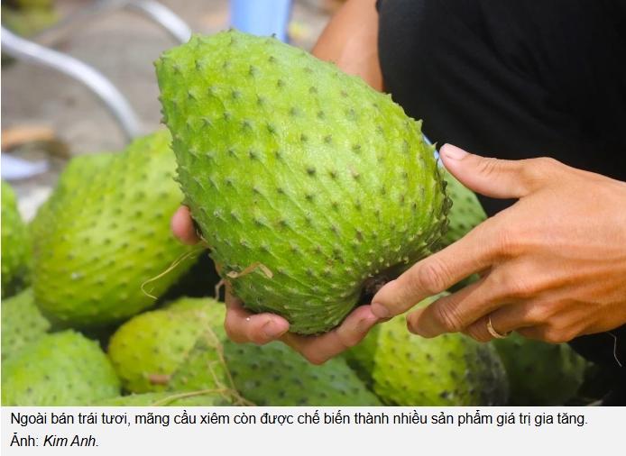 Tuy nhiên, khó khăn lớn nhất thời điểm này là hầu như bà con thiếu thông tin thị trường, phụ thuộc thương lái. Sau khi địa phương triển khai một số dự án hỗ trợ, HTX được đầu tư máy móc chế biến trà mãng cầu, rượu mãng cầu… kéo theo giá mãng cầu xiêm tăng mạnh, có thời điểm lên đến 100. 000 đồng/kg.