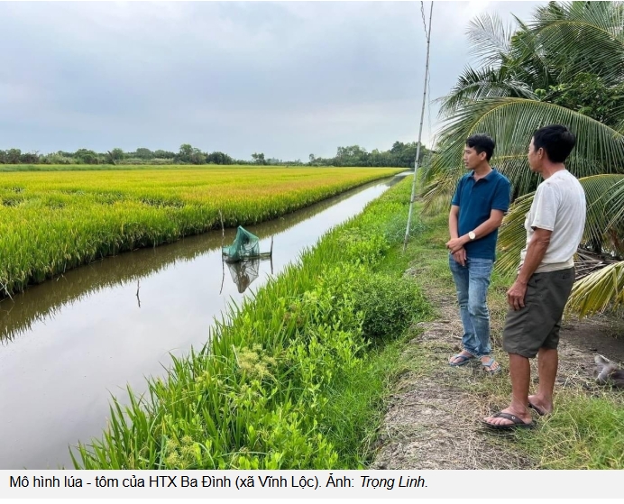 Ông Bé chia sẻ: “Sau vụ tôm, chất thải trong đất trở thành nguồn dinh dưỡng cho lúa, tôi hầu như không phải bón phân. Rơm rạ sau thu hoạch tiếp tục phân hủy, tạo nguồn thức ăn tự nhiên cho tôm vụ sau. Nhờ đó, chi phí giảm, hiệu quả kinh tế lại tăng trên cùng diện tích”.