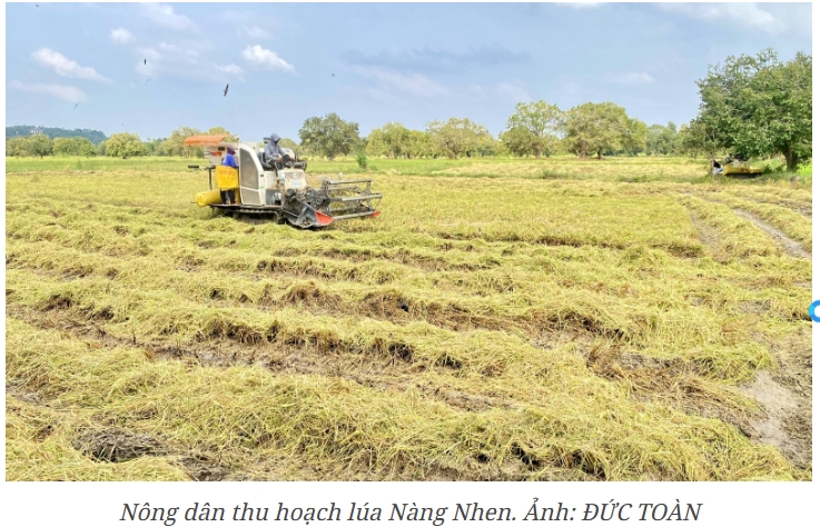 Hiện, nông dân xã Tri Tôn, nhất là đồng bào Khmer đang bước vào cao điểm thu hoạch lúa Nàng Nhen. Dù năng suất không cao, bình quân chỉ đạt khoảng 450 - 500 kg/công, nhưng giá bán từ 15.000 -18.000 đồng/kg, cao gần 3 lần so với lúa ngắn ngày nên nông dân vẫn có lợi nhuận từ 3 - 4 triệu đồng/công.