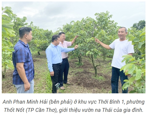 Đưa khách tham quan vườn na Thái đang ra trái, anh Phan Minh Hải ở khu vực Thới Bình 1, phường Thốt Nốt (TP Cần Thơ), phấn khởi cho biết, vụ thu hoạch na năm nay đạt năng suất cao hơn năm trước. Anh cũng đang dốc sức chăm sóc vườn mai để phục vụ thị trường hoa kiểng dịp Tết Bính Ngọ 2026.