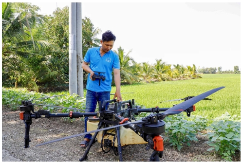 Sương sớm còn phủ mờ trên cánh đồng, anh Trần Đức Thắng ở ấp Thới Phước 1, xã Trường Thành đã đưa chiếc drone (máy bay không người lái) ra ruộng, bắt đầu “chuyến bay” đầu ngày. Về quê lập nghiệp với 12 công đất, anh Thắng vừa trồng lúa giống vừa phát triển dịch vụ drone phun thuốc, sạ lúa, phục vụ nông dân trong vùng. Mô hình sản xuất dịch vụ được tổ chức bài bản vừa giúp giảm công lao động, tiết kiệm chi phí sản xuất của nông dân, vừa mang lại cho anh Thắng nguồn thu ổn định.