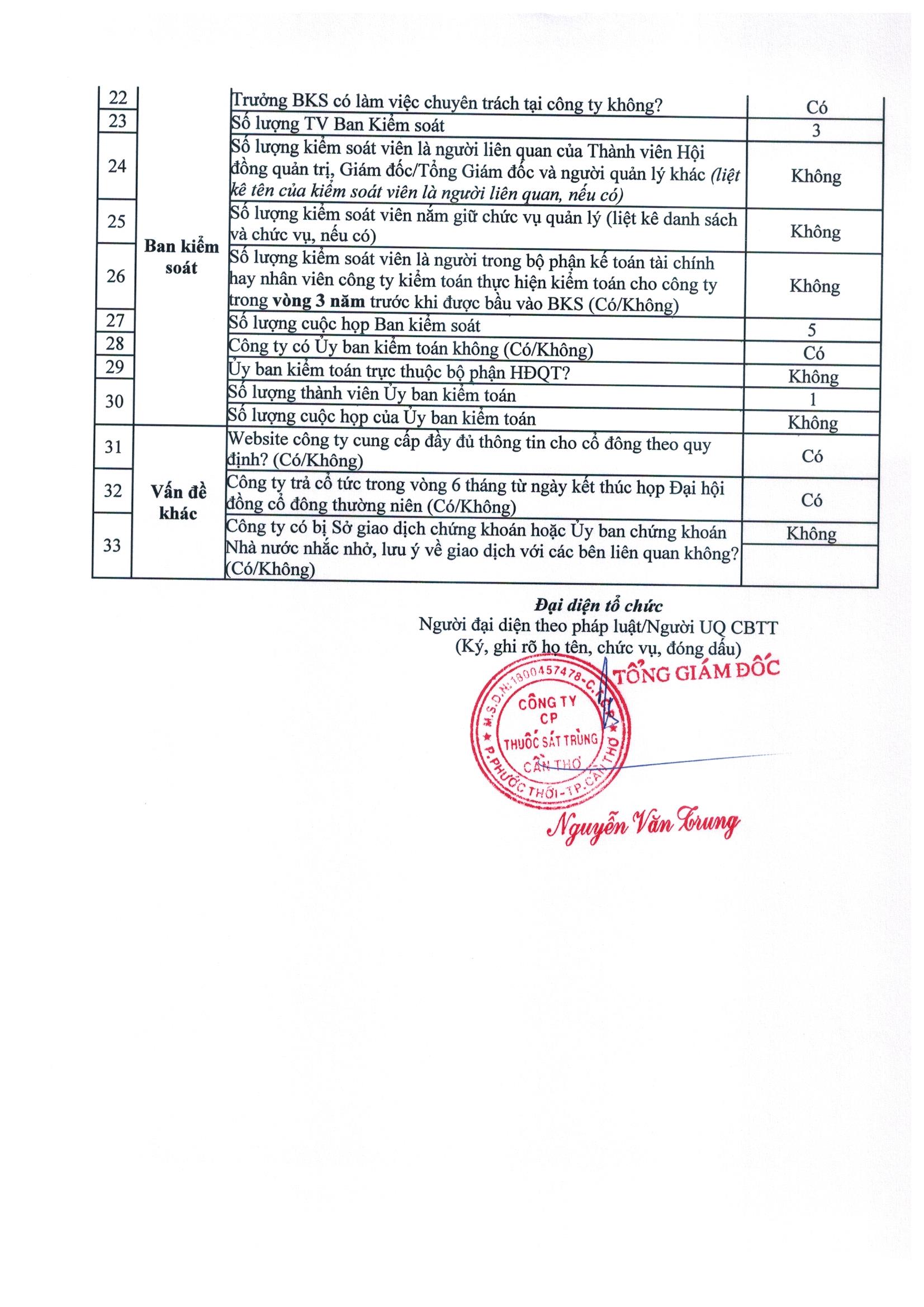 Bảng cung cấp thông tin về tình hình quản trị - 28/01/2026
