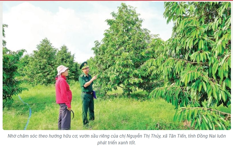 Chăm sóc sầu riêng theo hướng hữu cơ không chỉ góp phần kéo dài tuổi thọ vườn cây mà còn cho năng suất ổn định, tỷ lệ đạt chuẩn xuất khẩu tăng. Kỹ sư Đỗ Hữu Đức (Trung tâm Dịch vụ nông nghiệp khu vực XV, tỉnh Đồng Nai) cho rằng: “Khi bà con phòng bệnh và xử lý các loại sâu bệnh hại trên cây trồng nên hạn chế sử dụng thuốc hóa học, đặc biệt là các loại thuốc có trong danh mục cấm; tăng cường ứng dụng các chế phẩm sinh học thân thiện với môi trường”.